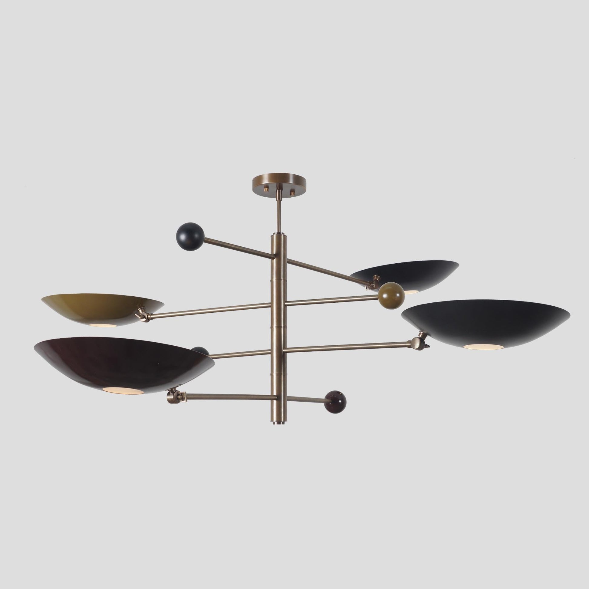 Stilnovo Counterbalance Multicolor Disk Chandelier, Mid Century Modern 4 Shade Sputnik Brass Chandelier, Counterweight Ceiling Pendant Light