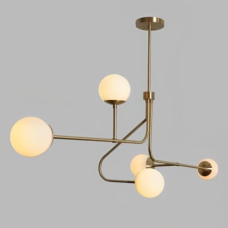Add a touch of Italian-inspired elegance to your home with this Mid-Century Modern Twisted Arms Semi-Flush Mount Globe Chandelier. Featuring gracefully curved brass arms and five hand-blown opal glass globes, this sculptural lighting fixture blends vintage charm with contemporary sophistication.