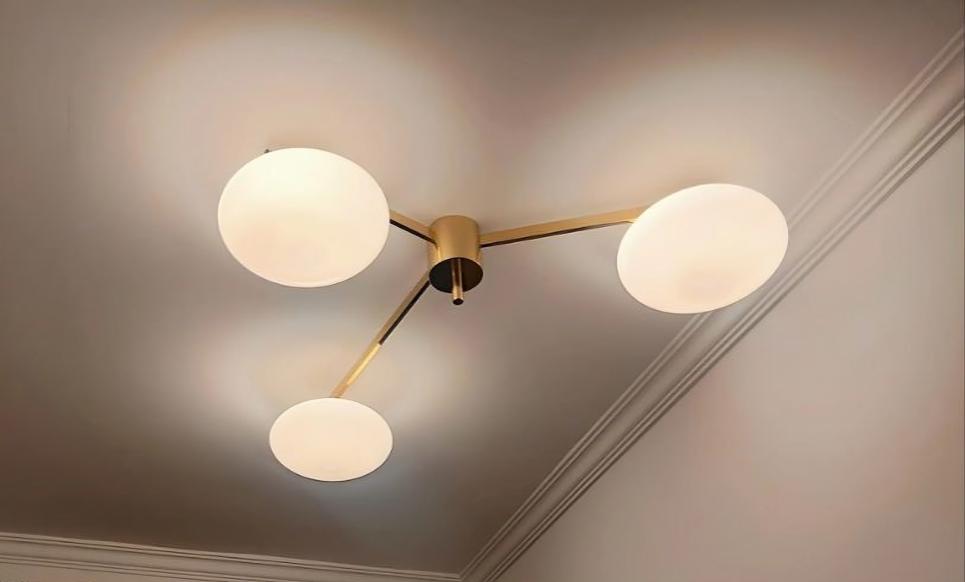 We present you this elegant and unique recessed ceiling light fixture, which comprises of 3 brass arms and 3 white opal glass balls. It will be the perfect centerpiece for any room. Crafted with meticulous attention to detail, this iconic light fixture is a testament to superior quality. The solid heavy gauge brass construction ensures long-lasting beauty, while the UL listed components guarantee safety.